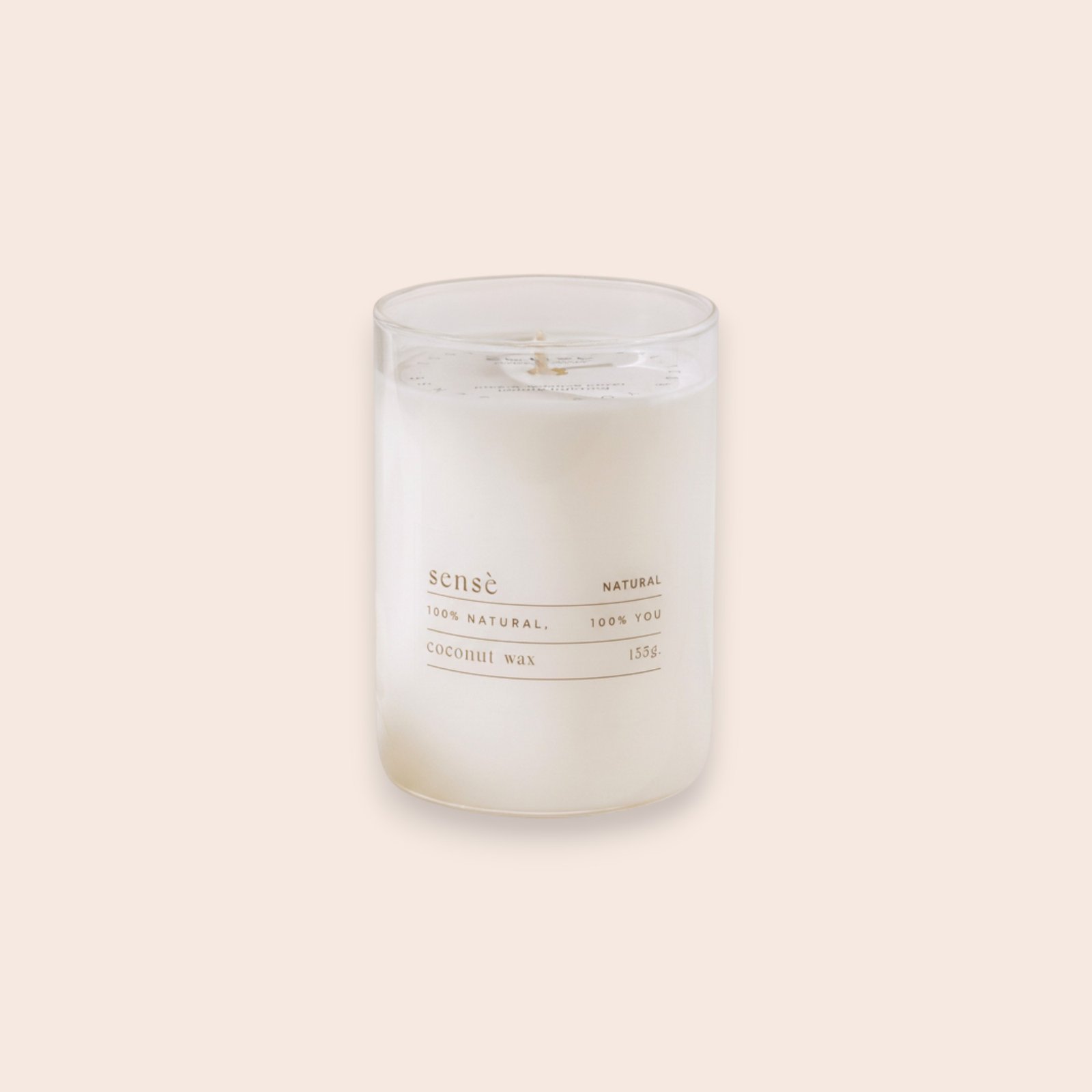 100% natural coconut wax. These candles are handmade and poured into a reusable glass cup.
